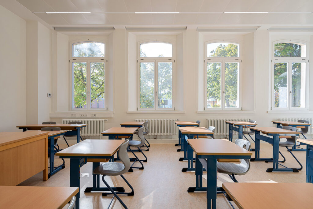 Trotz ihrer historischen Bedeutung war die Schule in einem sanierungsbedürftigen Zustand. Die technische Ausstattung, Fenster, Beleuchtung und der bauliche Zustand entsprachen nicht mehr den aktuellen Anforderungen. Auch die Barrierefreiheit war nicht gegeben, was insbesondere im Hinblick auf die enge Zusammenarbeit mit der benachbarten Förderschule eine Herausforderung darstellte.